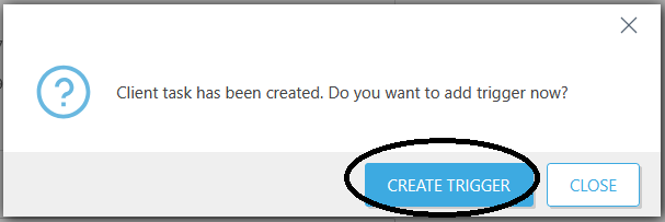 3- د ر پایان از شما خواسته می شود که این تسک را بر روی یک کلاینت اجرا کنید. بر روی create trigger کلیک کنید.